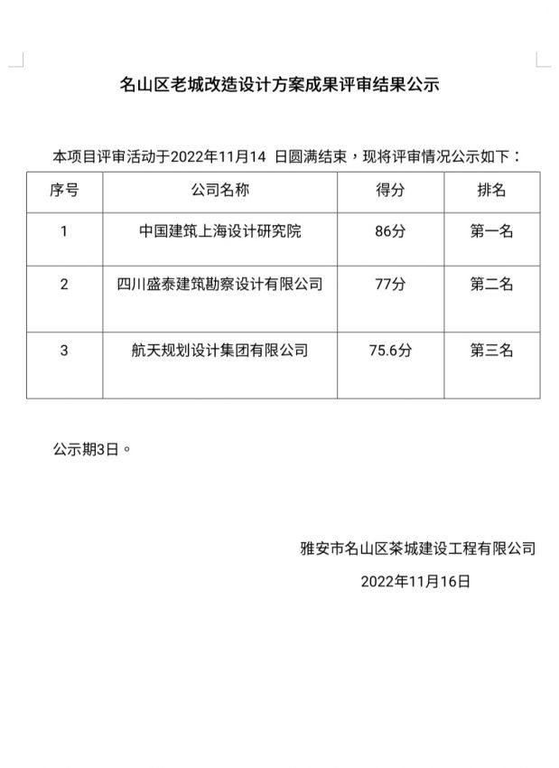 名山區(qū)老城改造設計方案成果評審結(jié)果公示